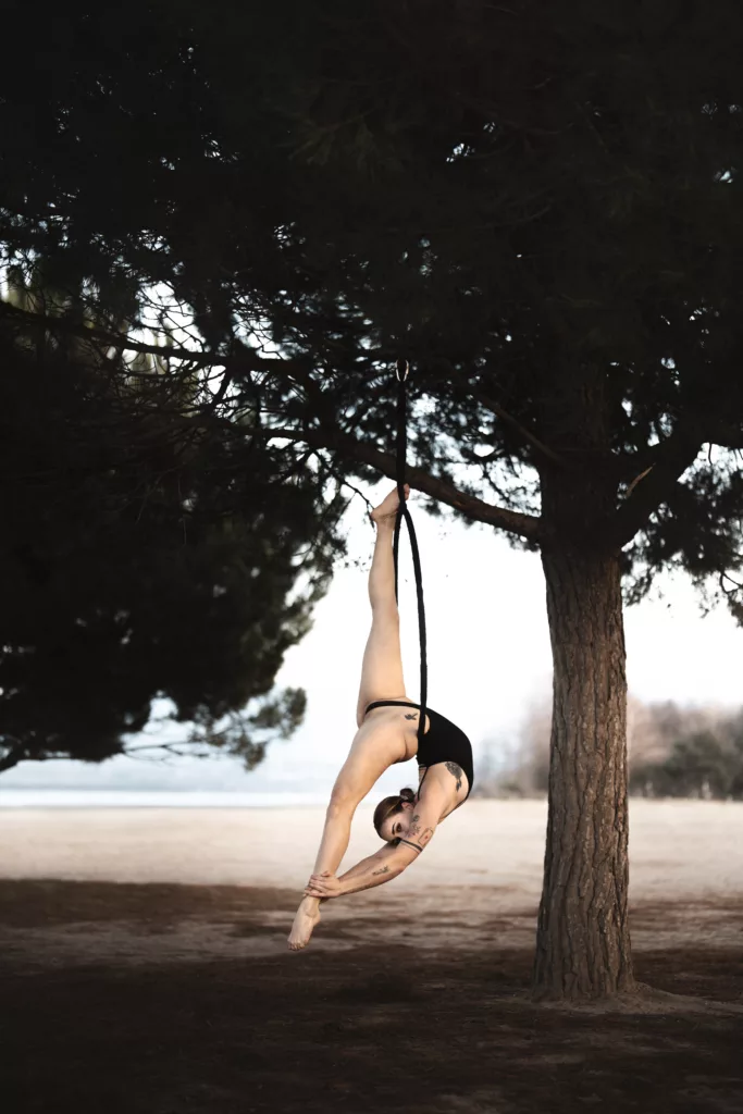 Le cerceau aérien — ou aerial hoop — est une discipline suspendue qui mêle force, souplesse et grâce. Pratiqué sur un agrès circulaire, il permet de développer stabilité, mobilité et précision, tout en offrant une véritable sensation d’élévation.